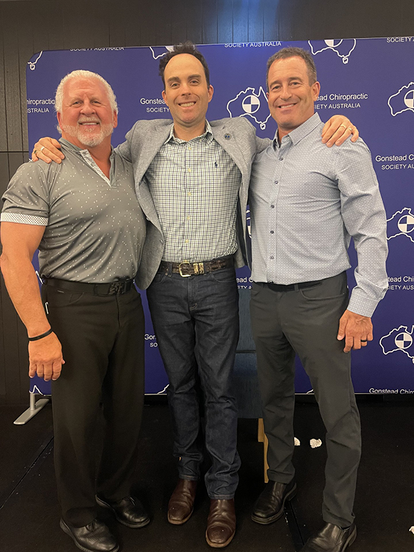 Toby with Gonstead Seminar USA staff, Dr Po Pomajzl (left) and Dr Matt Betterton (right) at the International Seminar hosted in Australia